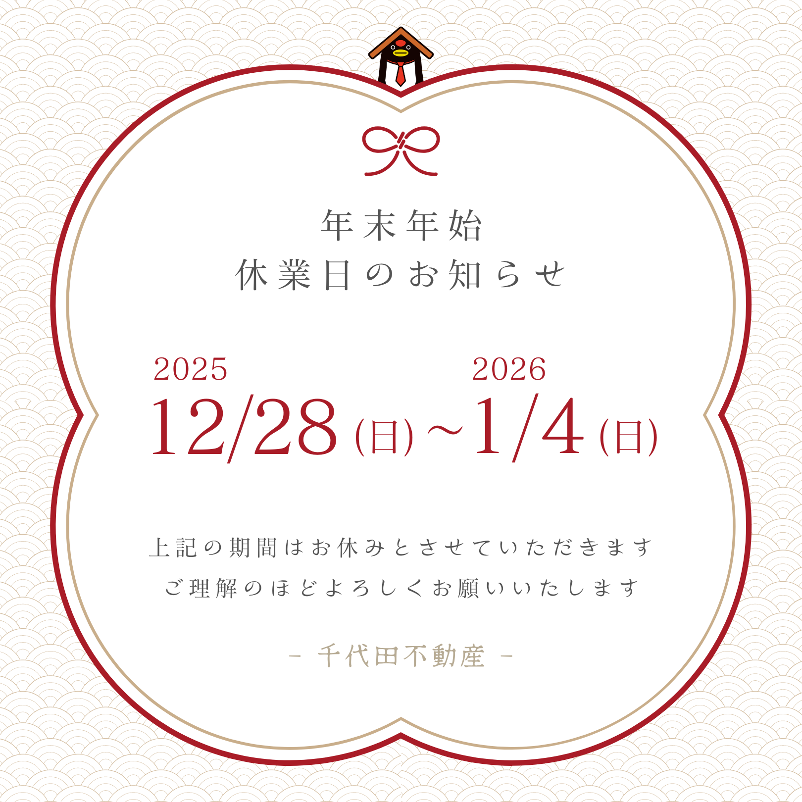 なお、1月5日(月)より、通常営業致します。